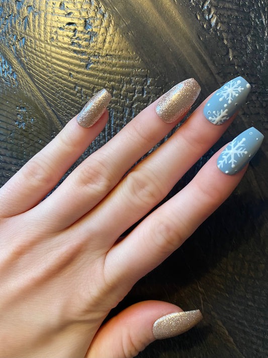 Our Gel Collection sets are expertly handcrafted by a team of skilled nail artists. They are made using an acrylic base and high-quality Gel polish that is then cured under an LED light. This intricate process makes our Gel sets extra durable, long lasting, and reusable. Our Gel sets come in multiple shapes and lengths. Click on your selection to view the various options.