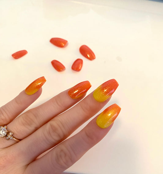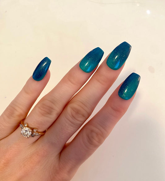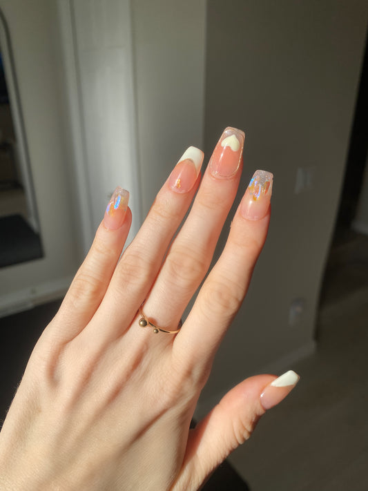 Our Gel Collection sets are expertly handcrafted by a team of skilled nail artists. They are made using an acrylic base and high-quality Gel polish that is then cured under an LED light. This intricate process makes our Gel sets extra durable, long lasting, and reusable. Our Gel sets come in multiple shapes and lengths. Click on your selection to view the various options.