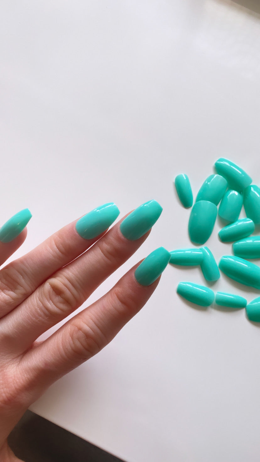 These nails are a vibrant, tealy blue, like the beautiful waters of the Maldives.