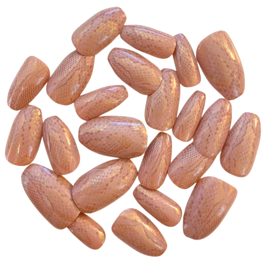 These nails have a wicked snake-skin pattern in warm shades of brown. People will be paralyzed like stone by the beauty of this set.