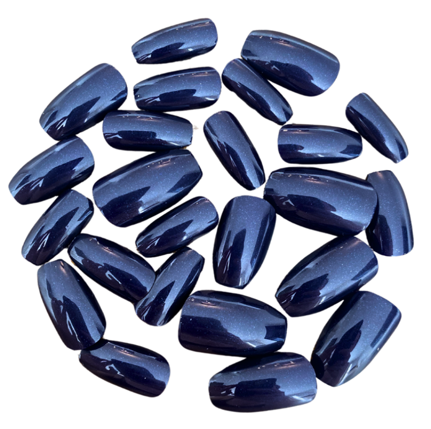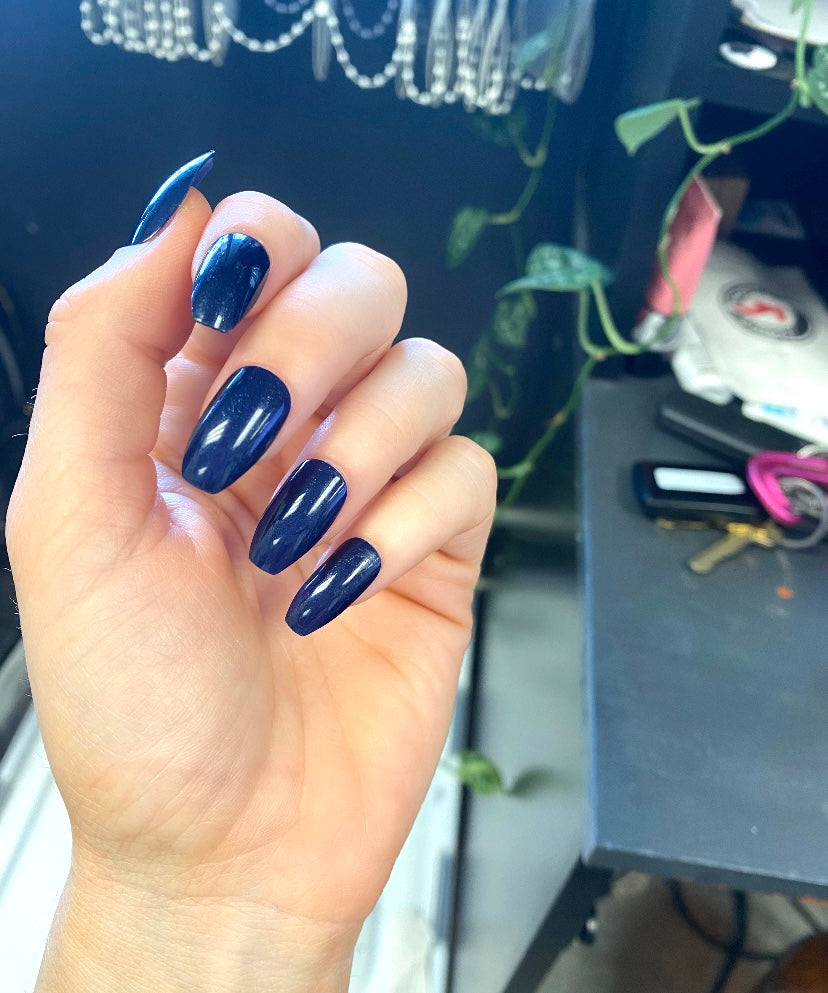 These nails are a deep, almost black, midnight blue. They have a beautiful, shimmery undertone.