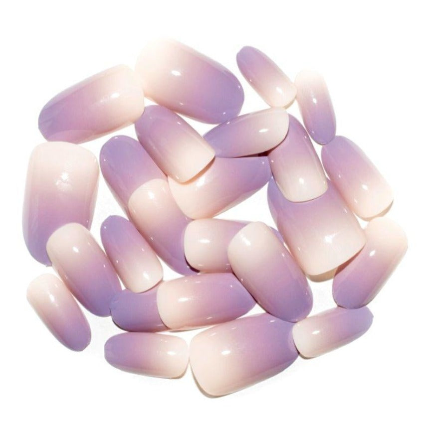 These beautiful nails are white at the base and transition into a purple.
