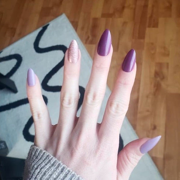 Dark and lights shades of purple, accented with glittery gold, make for a set so beautiful that they'll have you singing in the rain.
