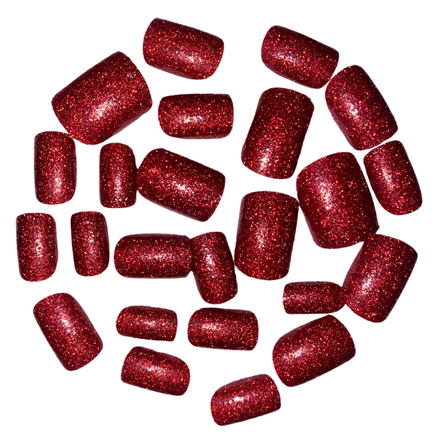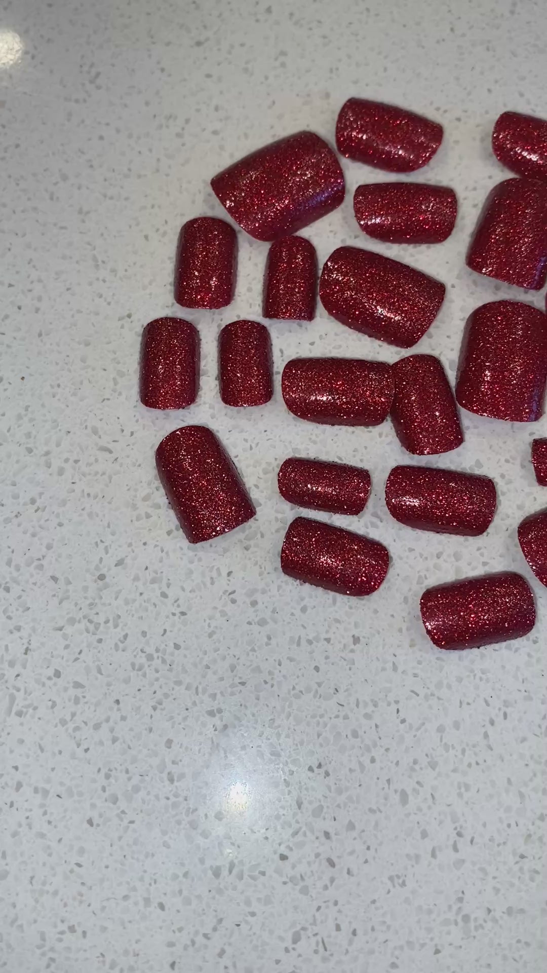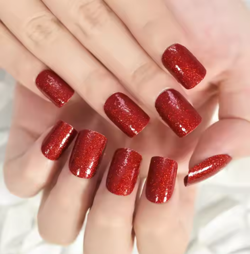 It's hard to capture by camera, but these gorgeous nails are beyond sparkly with red glitter.