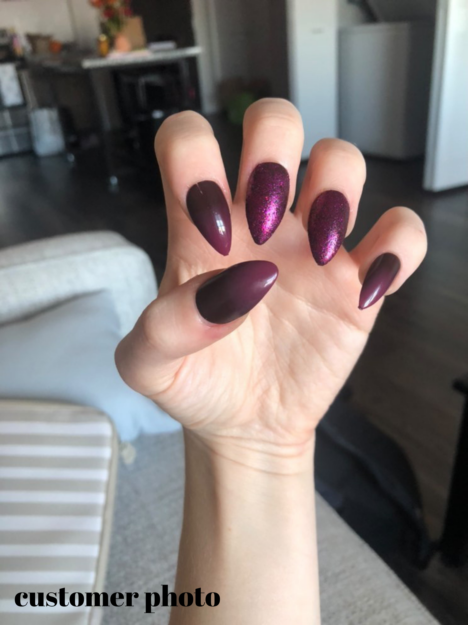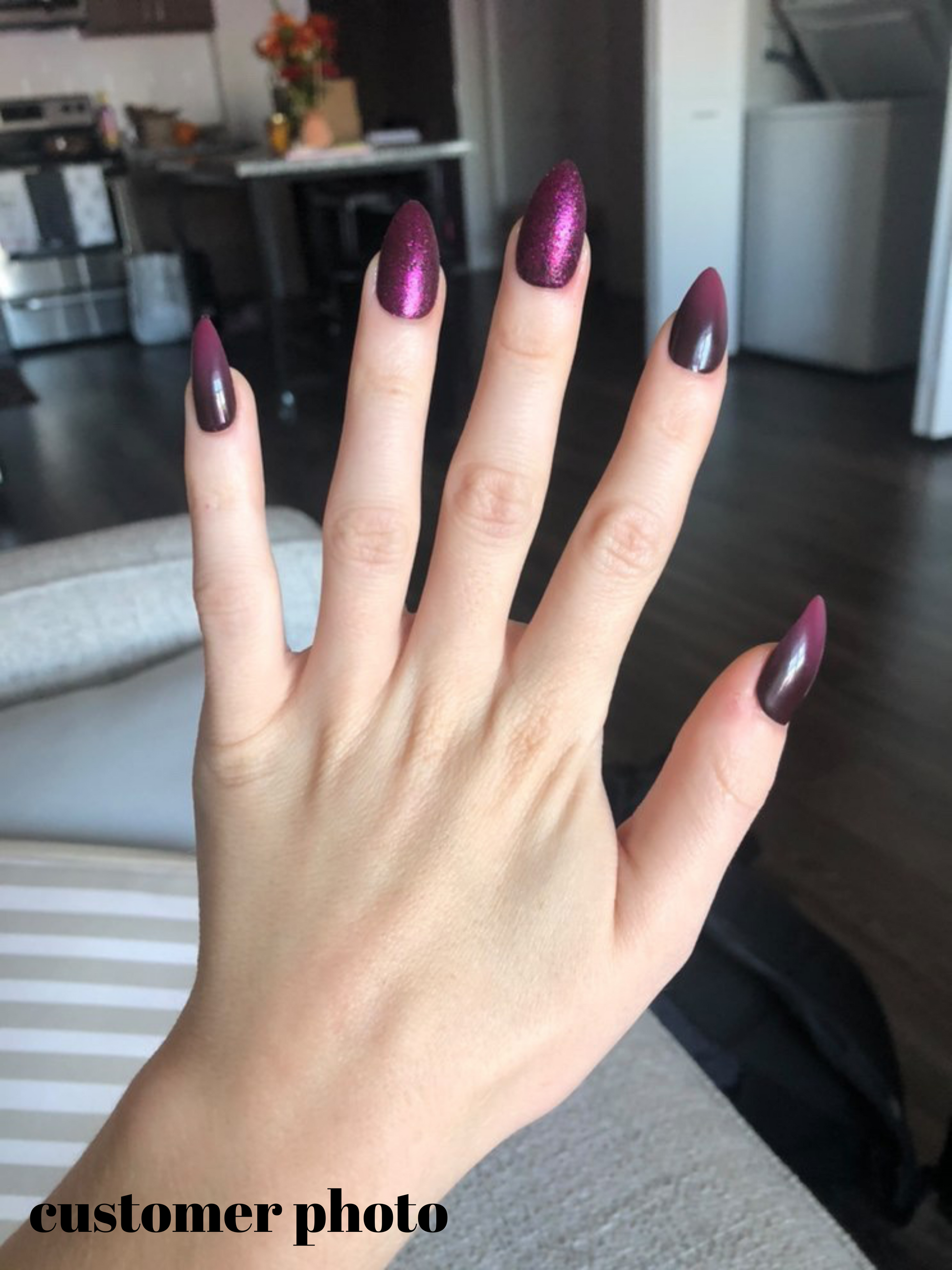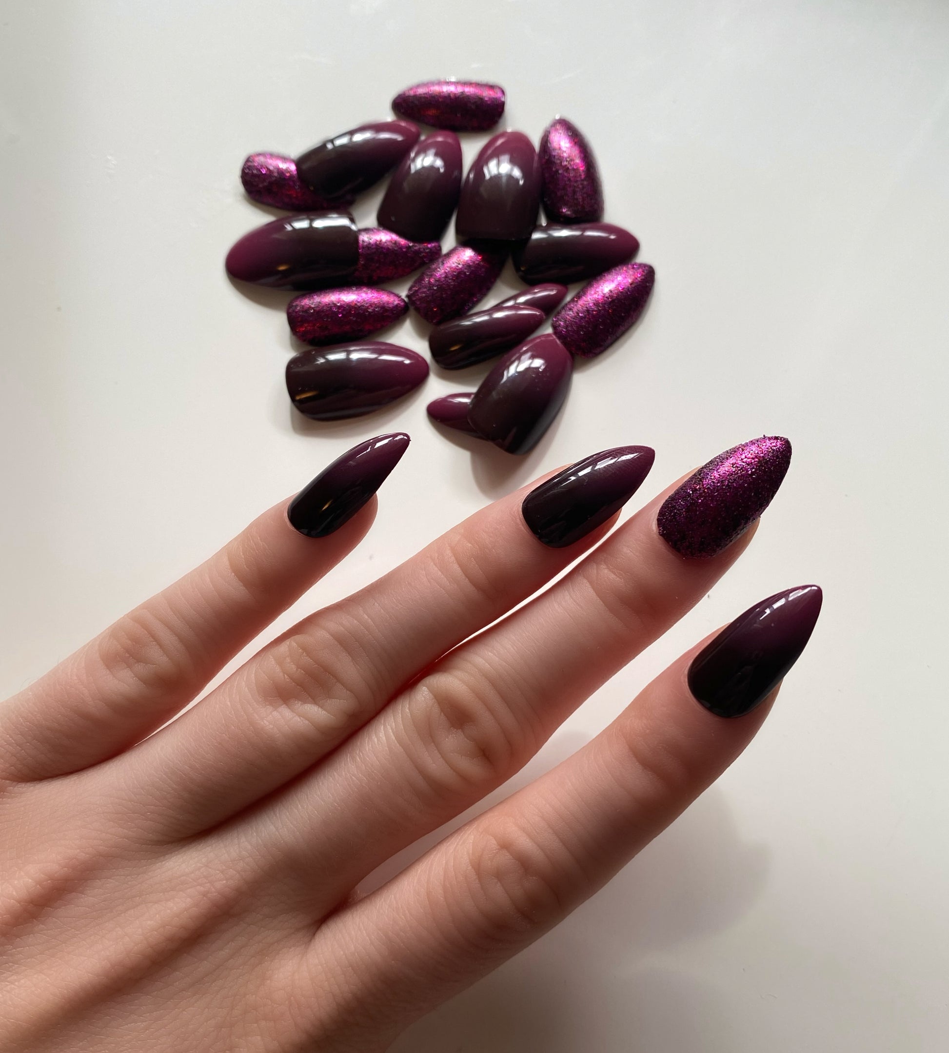 With their deep purple ombre, and dark glitter, these nails will have you feeling like the wicked temptress that you are.